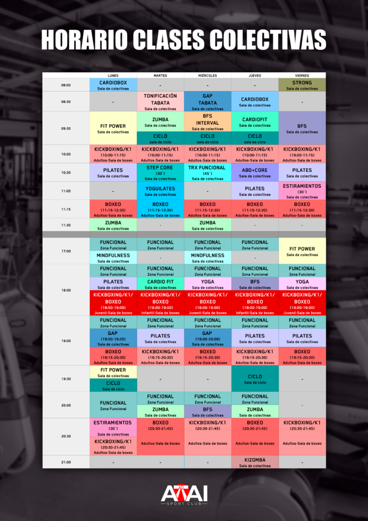 Horarios Horario del club y clases abrimos de lunes a viernes de 07.00 a 22.30h sábados y domingos de 09:00 a 14:00 *CONSULTAR EN GOOGLE y rrss PARA FESTIVOS inscríbete en nuestro club